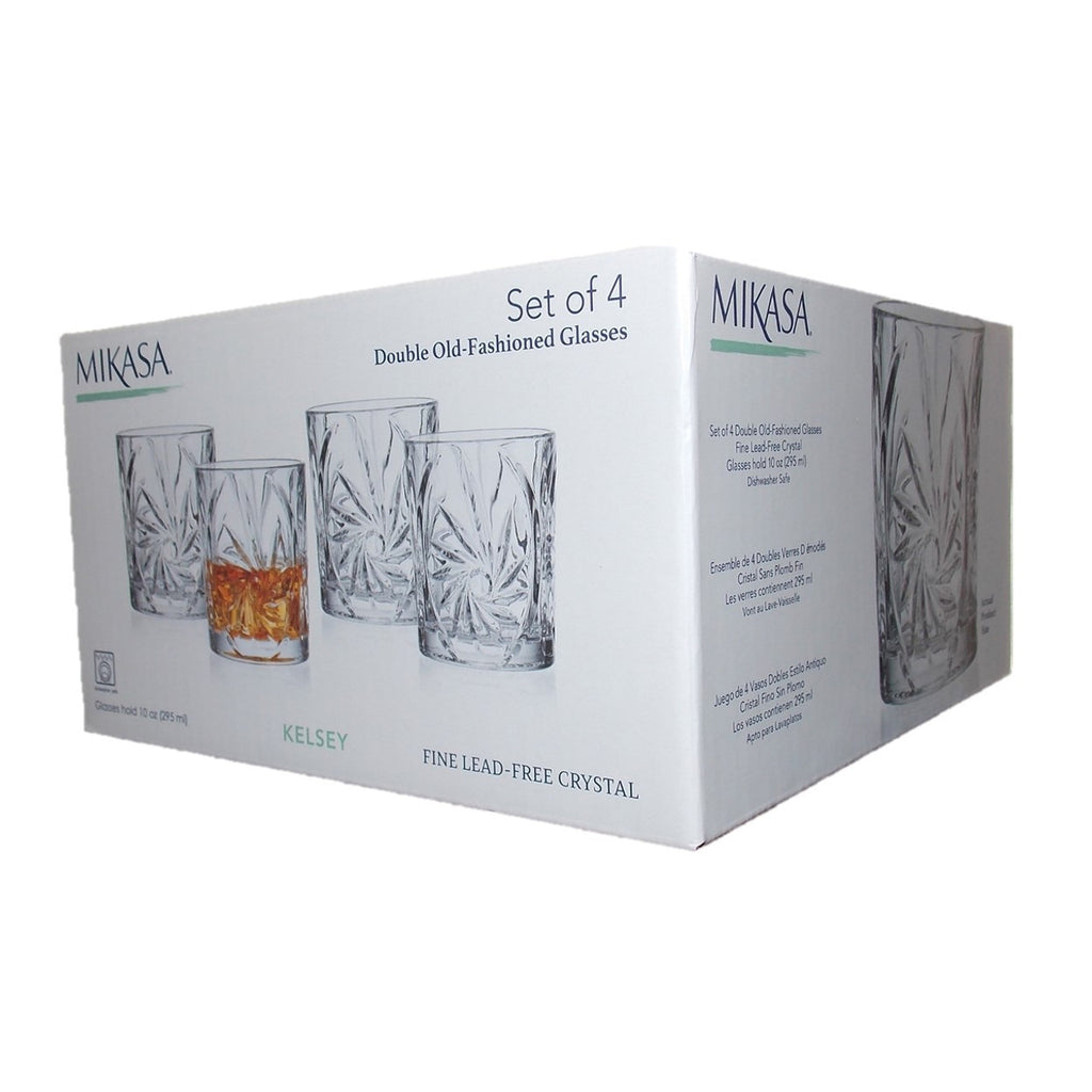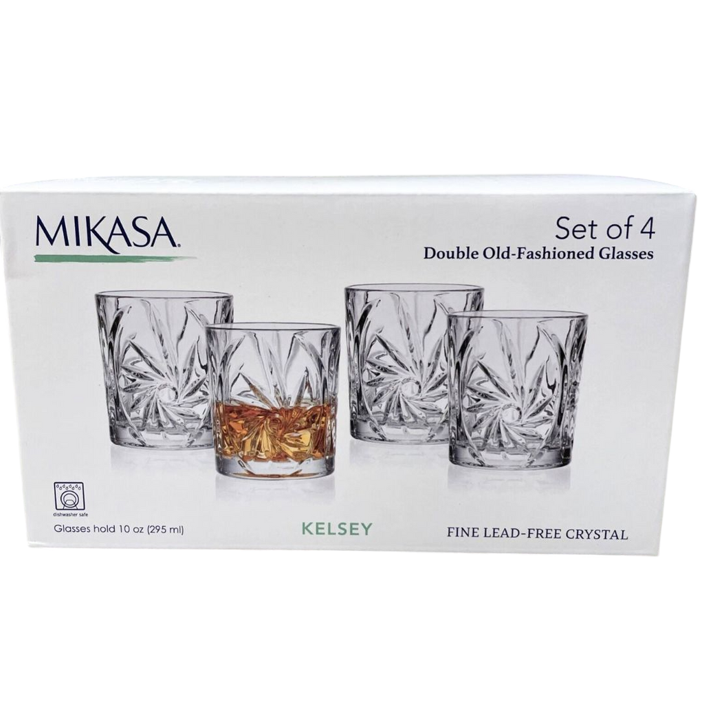 Mikasa Kelsey 4 Crystal Double Old Fashion Glasses 10-OZ=295ml Fine Lead Free Crystal #5295957